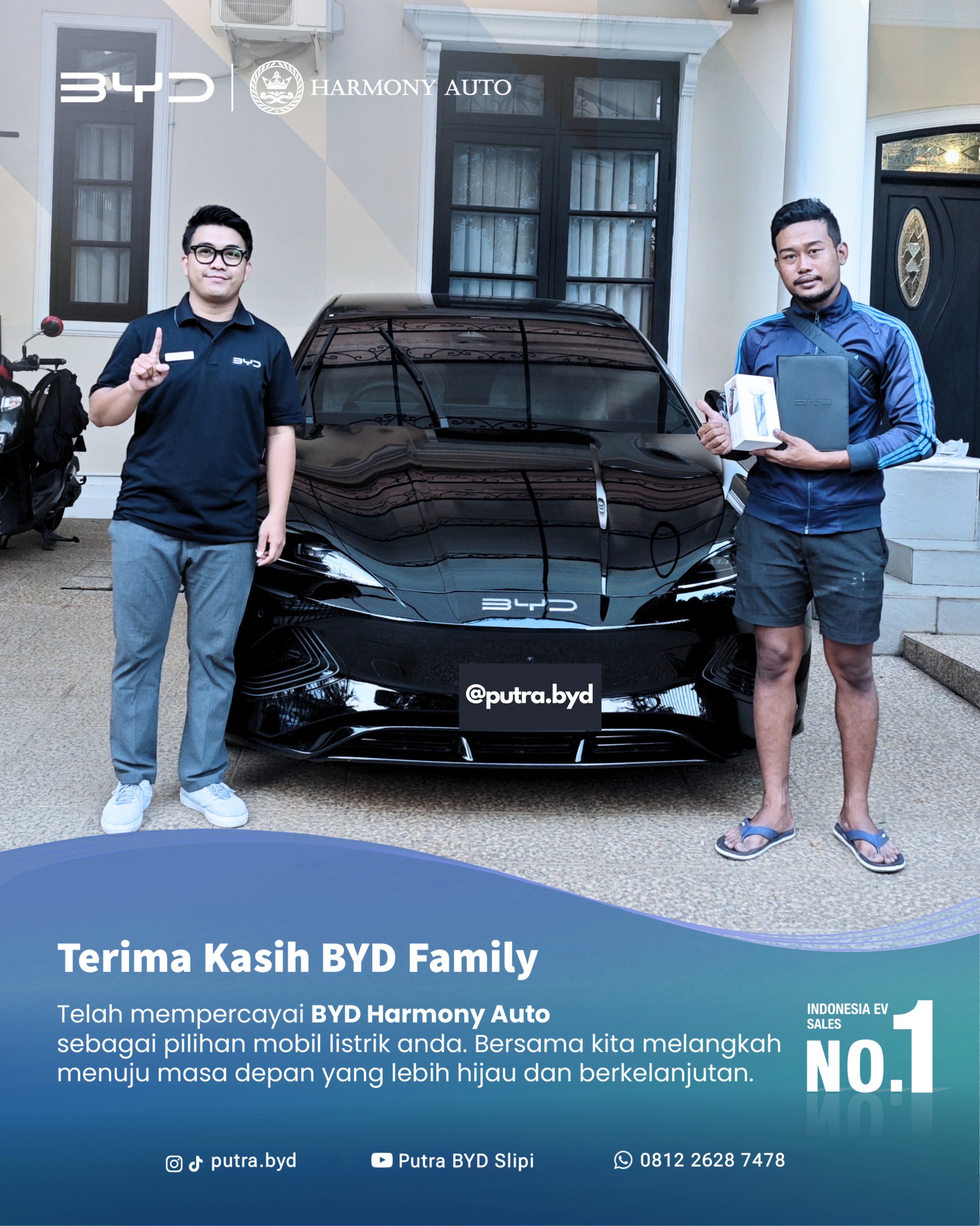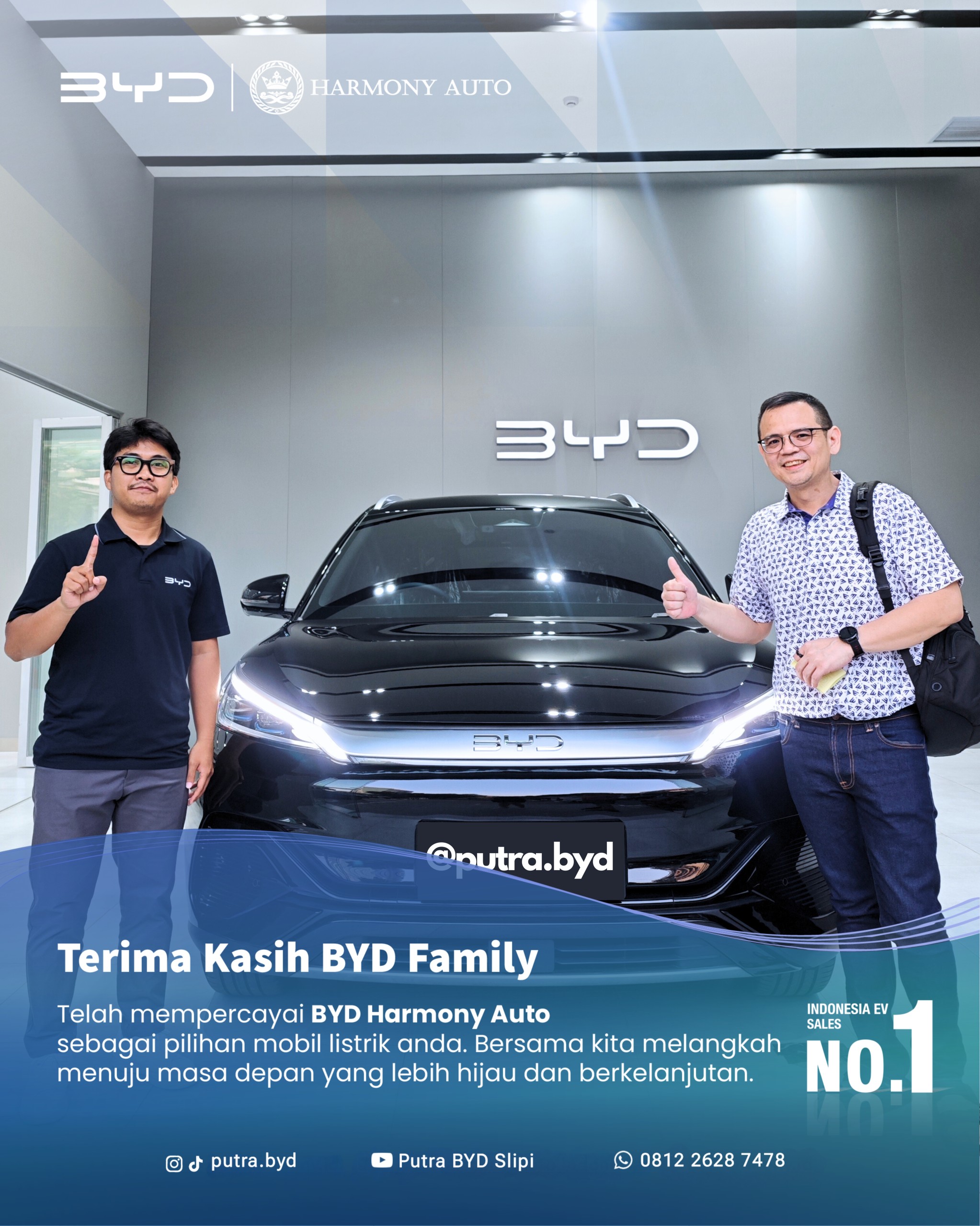 Selamat datang di website dealer resmi BYD Harmony Auto Slipi. Kami memberikan segala kemudahan dan kepuasan pelanggan untuk memilih mana varian mobil yang diinginkan. Menjadi prioritas utama kami untuk menciptakan kenyamanan pelanggan. Supaya tetap Instant dan praktis, hubungi saya untuk mendapatkan info seputar Promo Menarik dan Hadiah Spesial untuk pemesanan kendaraan melalui website ini.
